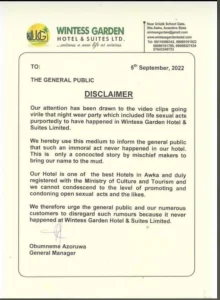 The event happened in Wintes garden hotel Awka (Though Wintes already released a press against it too).