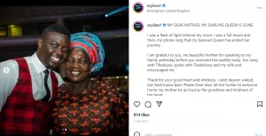 Seyi who shared the sad news on Instagram, said his mother spoke with him and his family before her death.