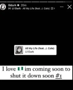 Lil Durk shared an emoji of Nigeria’s and said he is coming to Nigeria to shut down everywhere soon.