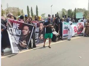 The protest comes days after Akpoti-Uduaghan accused Akpabio of harassment and claimed he had targeted her after she refused his sexual advances.